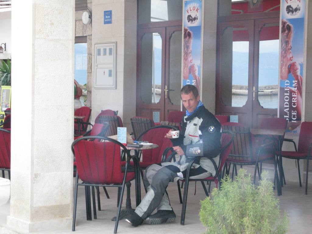 Die Temperaturanzeige auf dem Display des Motorrads , mag auch beim Hinabfahren nicht wirklich wieder in die Höhe gehen, was dem körperlichen und mentalen Empfinden der Sozia voll entspricht. In Markaska dann endlich spät genug angekommen, wird uns die hart erworbene Entschädigung in Form eines supertrooper Hotels zuteil! Wir baden unsere Durchunddurchkälte in feinstem Duftschaum weg, wärmen uns im edlen Ambiente des Hotelzimmers auf und tapern dann zum guten jugoslawischen Fleischplattenabendessen in die Stadt hinein.
