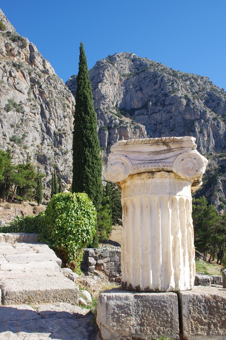 Wesentlich wärmer als in den Bergen, bei voller Sonnenmaxime, frühstücken wir handgemacht im Provisoriumsstatus. Dann geht es per pedes 3km Richtung Dorf Delfi und darüber hinaus bis wir die heiligen Stätten des Apoll´ und des Orakels betreten und bestaunen. In Gesellschaft multinationaler Schüler- und anderer Reisegruppen durchwandern wir Theater, Säulen (dorisch und korinthisch), Stadium und Heiligtum der Athene sowie last not least das archäologische Museum.