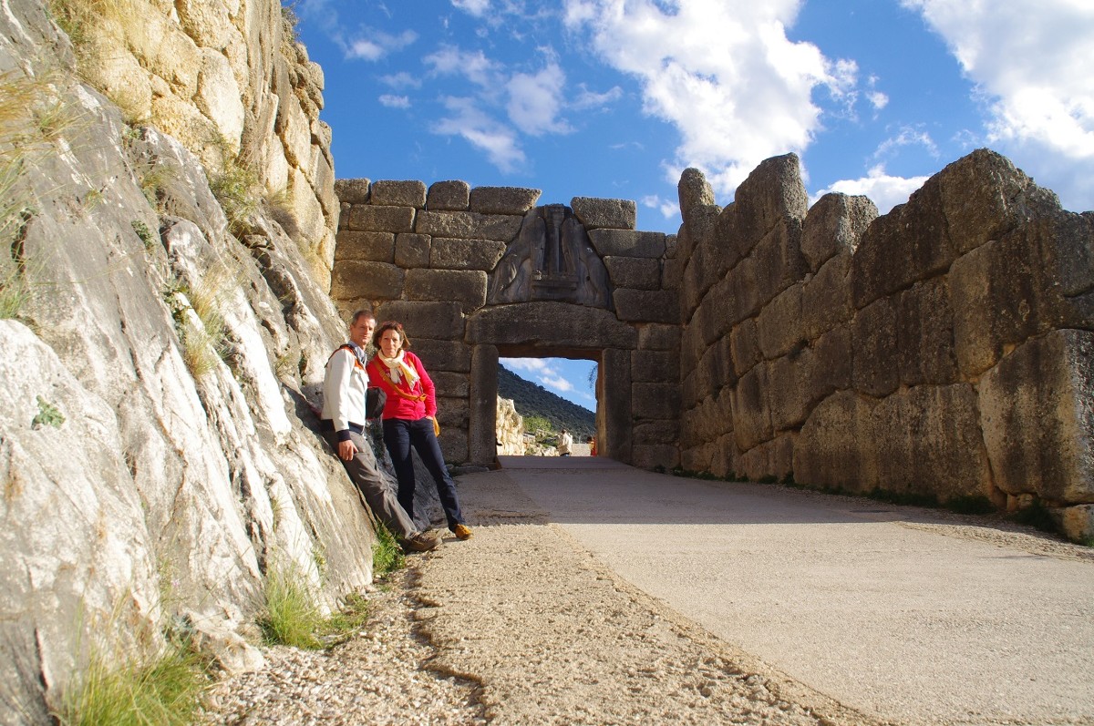 Nun kann auch Mykene samt Löwentor in der Abendsonne genossen werden. Hochherrschaftlich durchschreiten wir gut 3000 Jahre alte Siedlungsanlagen. Hier hat Heinrich Schliemann die goldene Agamemnonmaske gefunden.