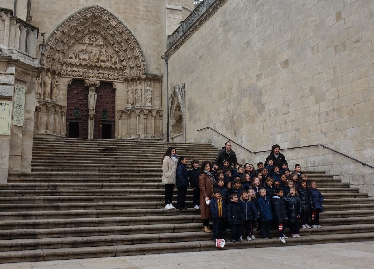 Also morgens ging es los vom Campingplatz und wir fuhren hinein nach Burgos, sahen uns die Stadt an: nebelverhangene Kathedrale, eine ganz besondere Stimmung. Kindergruppen werden von ihren Lehrern zu der Krippe in der Kirche geführt. Burgos ist eine Station auf dem Jacobsweg und im Bodeneingelassene goldene Jacobsmuscheln markieren die Richtung, wo es nach Santiago de Compostela geht.