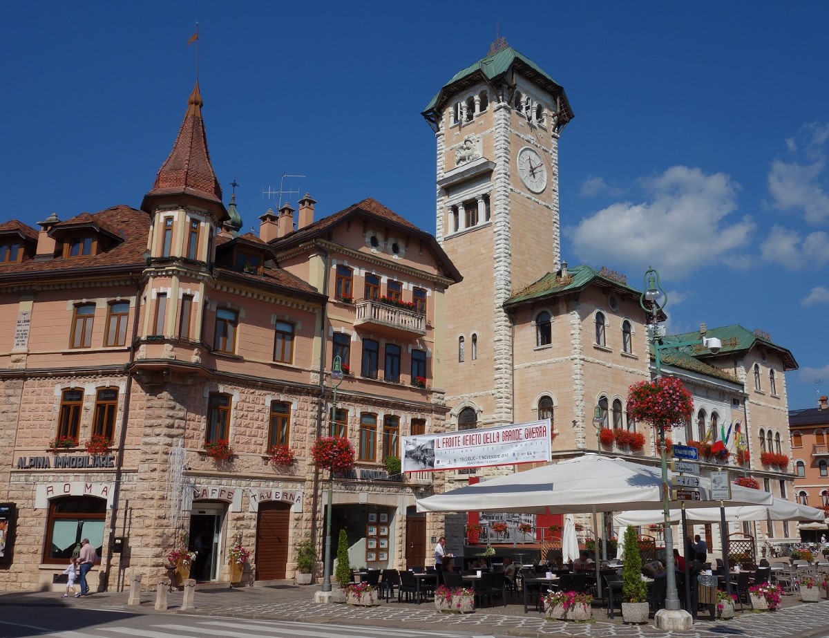 Wir schrauben uns weiter hinauf bis nach Asiago, dem schmucken Hauptstädtchen der Hochebene. Sommers wie winters wird das Städtchen stark von Wanderern, Golfern bzw. dann Skifahrern frequentiert. Wir bleiben nur auf einen Cappuccino, um danach weiter Richtung Monte Verena zu fahren.
