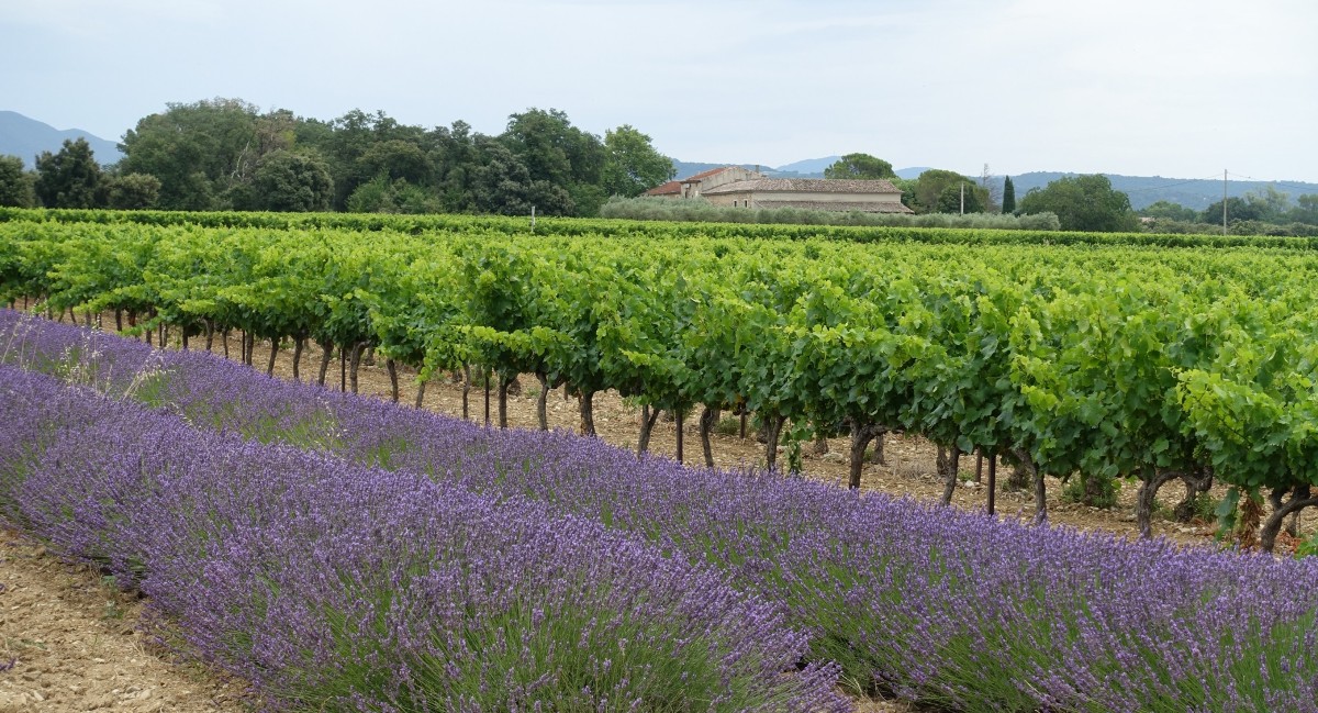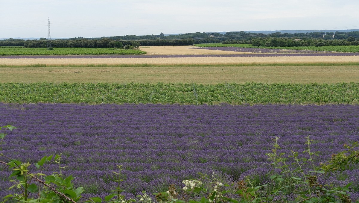 An Alès vorbei, die D6 entlang, stoppeln wir bis Bagnoles und setzen dann bald wieder über die Rhone über. Die Landschaft verändert sich hier sehr, wir sind ja nun auch im Departement Provence: weitläufige Felder mit Wein (der Cotes des Rhone!) und Lavendelplantagen wechseln einander farbharmonisch ab. Es ist ein Augen- und Geruchsschmaus!